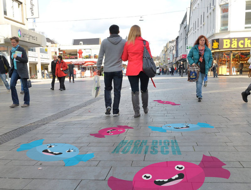 „Wir übernehmen jetzt die Innenstadt! Haltet die Augen offen und folgt dem Pfad aus Süßigkeiten. Denn wir zeigen dir, wo du #sweeds kaufen kannst. Es wird bunt!“